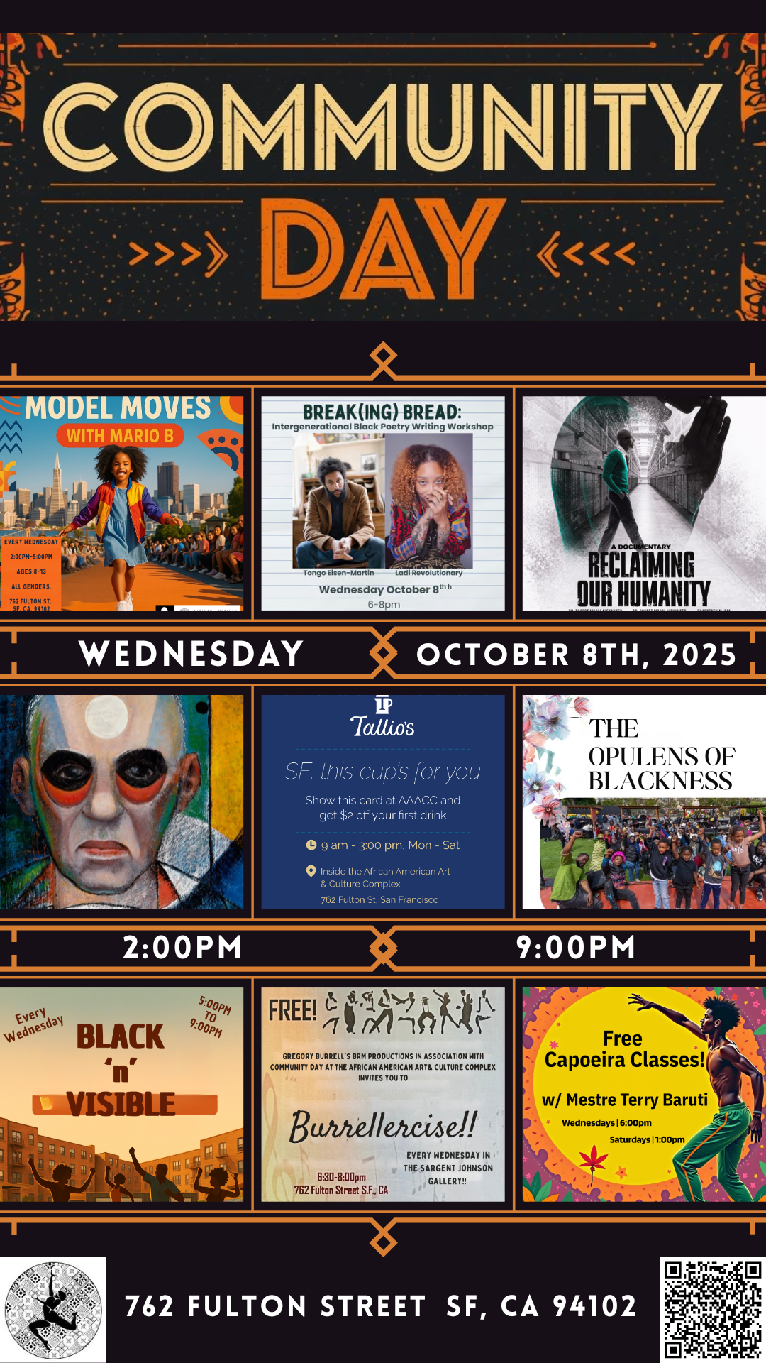 - On Wednesday, October 8th, come out to Community Day at the AAACC. A weekly event with various activities and offerings that are free and open to the community.