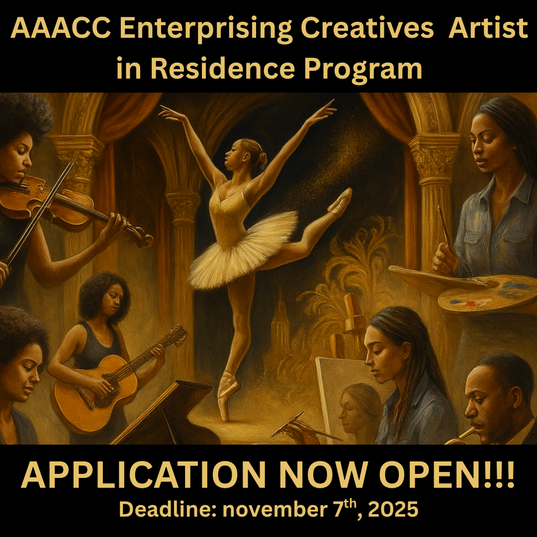 This unique initiative is designed to help emerging and mid-career artists and creative entrepreneurs bridge the gap between creative passion and a sustainable, profitable career.  Through the Artist in Residence Program AAACC supports and uplifts Black, Indigenous and People of Color (BIPOC) artists/ creative entrepreneurs.