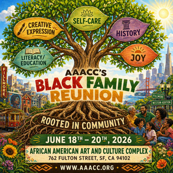 The African American Art and Culture Complex’s annual Black Family Reunion is a celebration of art, culture, and Black liberation in San Francisco. Live performances, film, music, workshops, arts and crafts, local vendors, history, food and fun will combine to bring community together to honor our ancestral past, celebrate the present, and look to the future.